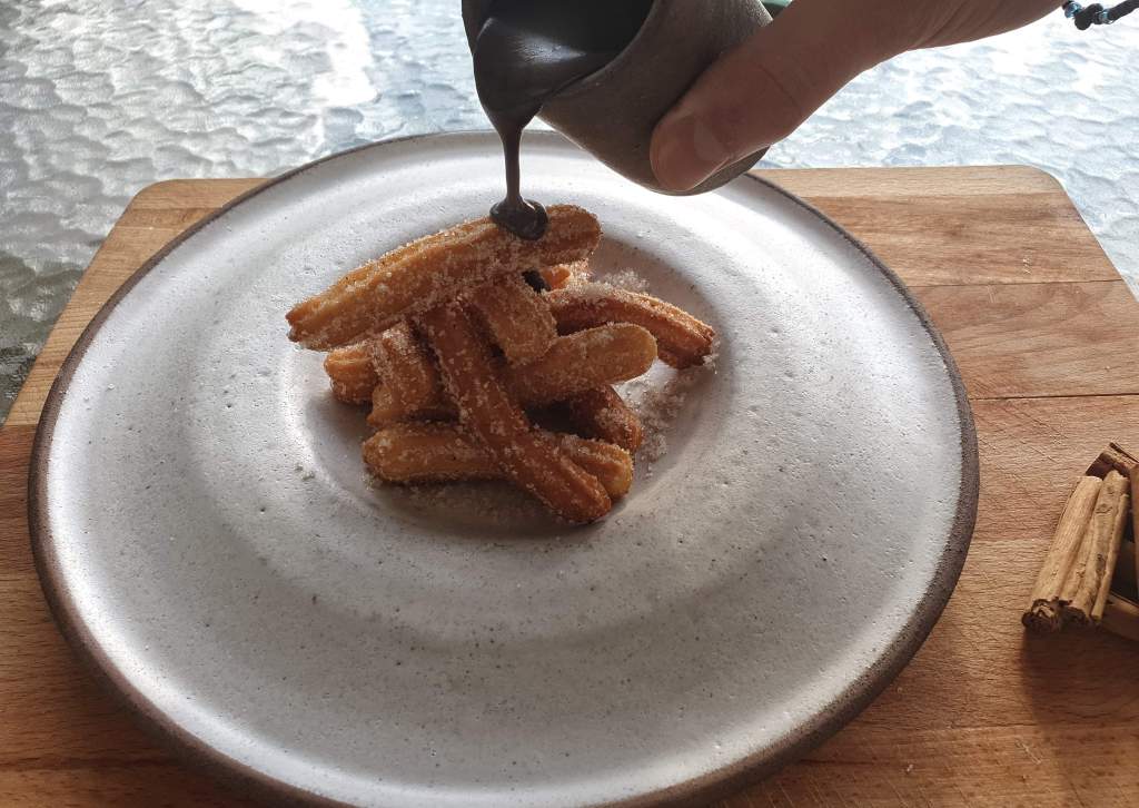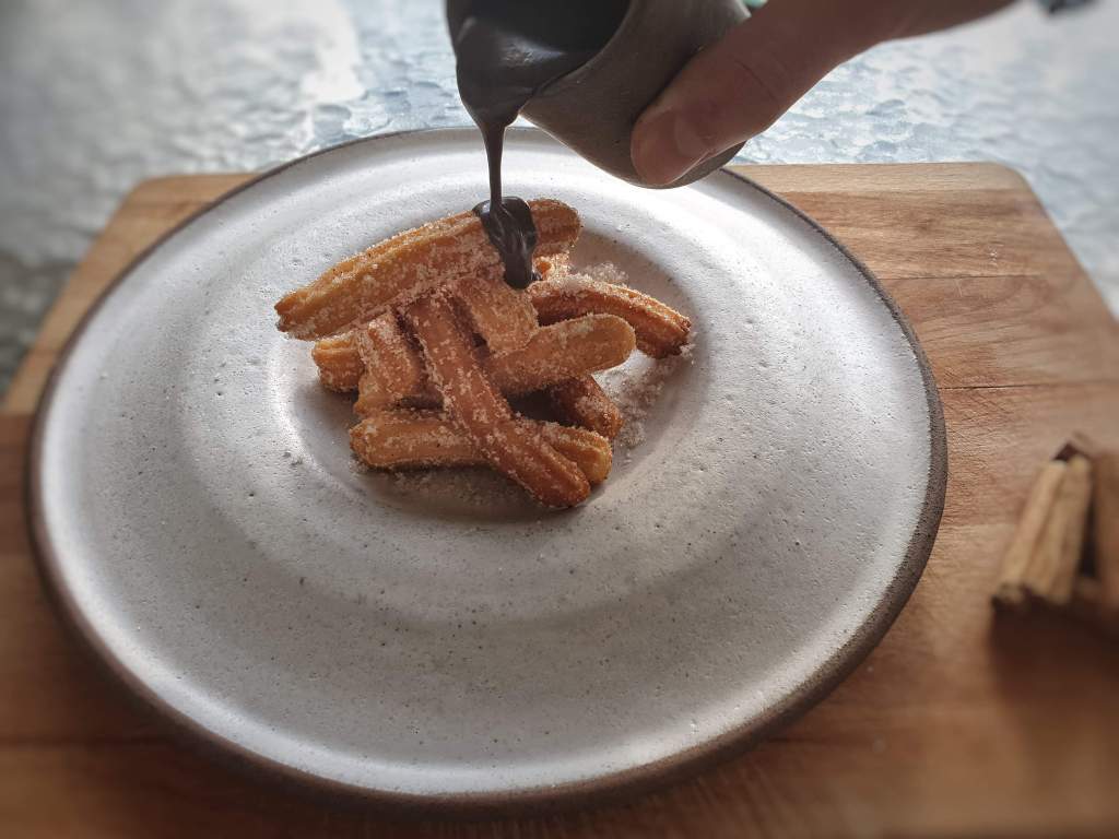 ΓΙΑ ΤΗ ΣΑΛΤΣΑ ΣΟΚΟΛΑΤΑΣ:Ζεσταινουμε τη κρεμα γαλακτος σε ενα κατσαορακι η στα μικροκυματα και με αυτη λιωνουμε τη σοκολατα μας.Ανακατευουμε παρα πολυ καλα και εχουμε ετοιμη τη σαλτσα μας,ειτε να την βαλουμε πανω στα τσουρος ειτε να βουταμε μεσα απο αυτη.